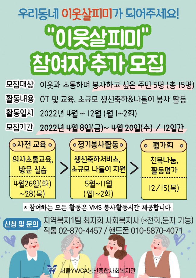 2022년 4월 8일(월)~20일(수)까지 이웃살피미 추가 모집을 받고 있습니다.
