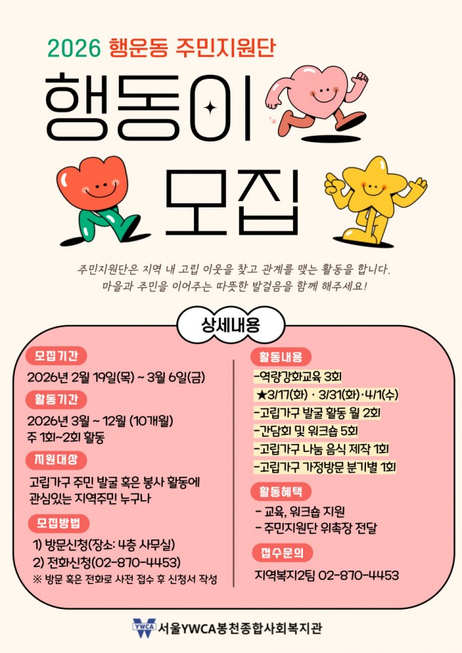 이웃에 대한 관심과 봉사에 관심이 있으신 분들은 신청바랍니다:)